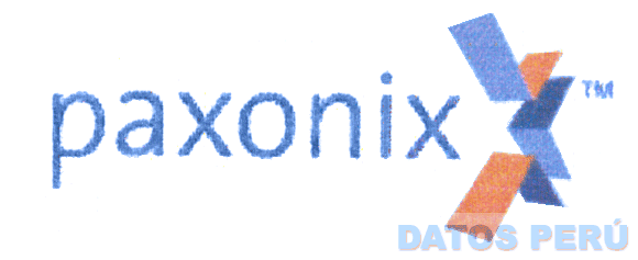 EL LOGOTIPO CONFORMADO POR LA DENOMINACION PAXONIX ESCRITA EN LETRAS CARACTERISTICAS Y FIGURA GEOMETRICA IRREGULAR, EN LA COMBINACION DE COLORES CELESTE, ANARANJADO Y AZUL; CONFORME AL MODELO ADJUNTO