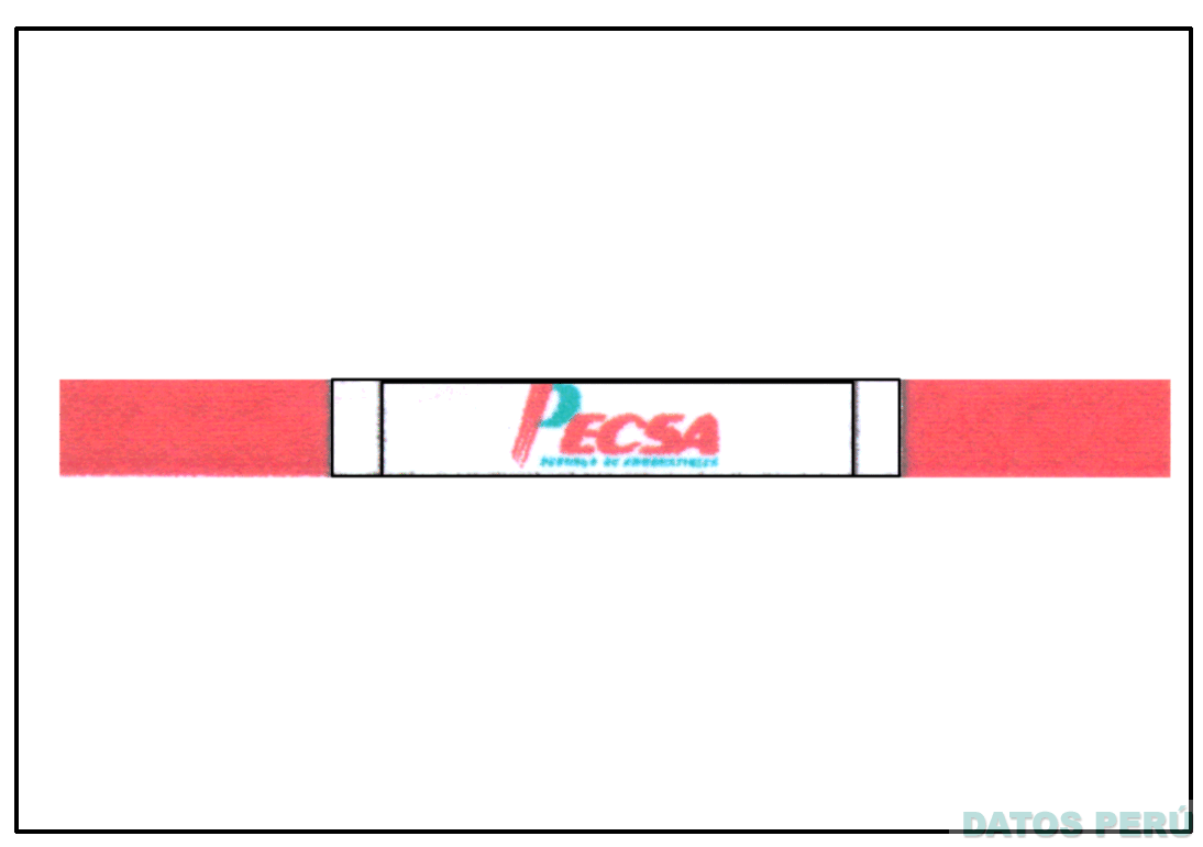 LA DENOMINACION PECSA, SOBRE LA DENOMINACION PERUANA DE COMBUSTIBLES EN LETRAS CARACTERISTICAS EN LOS COLORES ROJO (PANTONE 3M#485C2X) Y VERDE (PANTONE 3M#322 C) CONTENIDAS EN EL RECTANGULO DE COLORES BLANCO Y ROJO; SEGUN EL MODELO ADJUNTO,