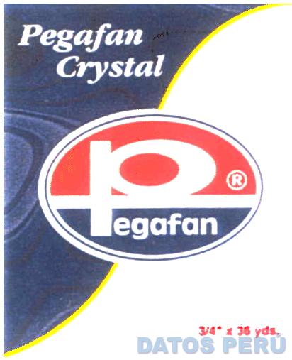 LA ETIQUETA CONSTITUIDA POR LA LETRA P Y LA DENOMINACION PEGAFAN ESCRITA EN LETRAS CARACTERISTICAS DENTRO DE UN OVALO, EN LOS COLORES ROJO, AZUL Y BLANCO EN LA PARTE EXTERNA DEL OVALO, Y EN LA PARTE SUPERIOR IZQUIERDA SE APRECIA LA DENOMINACION PEGAFAN CRYSTAL ESCRITA EN LETRAS CARACTERISTICAS DE COLOR BLANCO SOBRE UN FONDO DE COLOR AZUL Y BORDE AMARILLO; CONFORME AL MODELO ADJUNTO