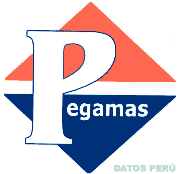 El logotipo conformado por la denominación PEGAMAS escrita en letras características sobre la representación estilizada de dos triángulos que forman la figura de un rombo, en los colores azul, blanco y anaranjado; conforme al modelo adjunto