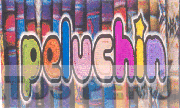 El logotipo conformado por la denominación PELUCHIN escrita en letras características, en cuya letra I se aprecia el diseño de una estrella, todo sobre un fondo compuesto por figuras irregulares, en la combinación de colores verde claro, anaranjado, azul, rosado, lila, morado, fucsia, celeste, blanco, beige, amarillo y plomo; conforme al modelo adjunto