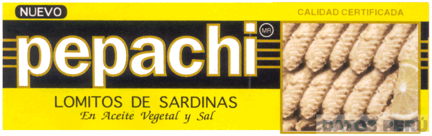 LA ETIQUETA CONFORMADA POR LA DENOMINACION PEPACHI ESCRITA EN LETRAS CARACTERISTICAS EN COLOR BLANCO Y DORADO, RODEADA POR CUATRO LINEAS DORADAS HORIZONTALES AL INICIO Y AL FINAL Y SOBREPUESTO A UNA FRANJA EN COLOR NEGRO A CUYOS LADOS SE APRECIAN DOS FRANJAS EN COLOR AMARILLO, EN EL EXTREMO DERECHO SE APRECIA LA FRASE CALIDAD CERTIFICADA; CONFORME AL MODELO ADJUNTO