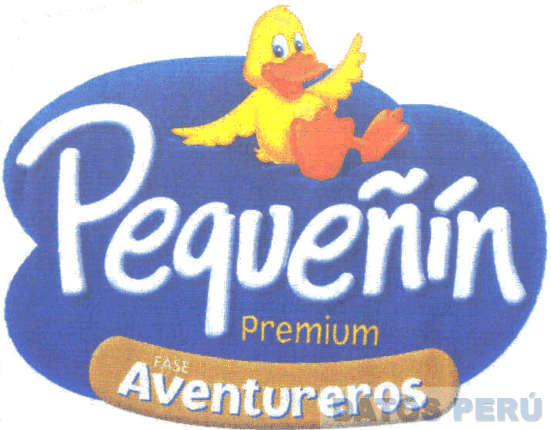 LA ETIQUETA CONFORMADA POR LA FIGURA ESTILIZADA DE UN PATO SENTADO SOBRE UN SILLON, DEBAJO SE APRECIA LA DENOMINACION PEQUEÑIN PREMIUM ESCRITA EN LETRAS CARACTERISTICAS; ASIMISMO SE APRECIA UNA FRANJA SEMIOVAL CONTENIENDO LA DENOMINACION FASE AVENTUREROS; TODO EN LOS COLORES AMARILLO, AZUL, ANARANJADO, BLANCO Y DORADO; CONFORME AL MODELO ADJUNTO
