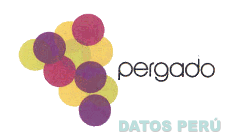 El logotipo conformado por la denominación PERGADO escrita en letras características en color negro y una amalgama de figuras circulares en colores morado, amarillo, verde y guinda; conforme al modelo adjunto