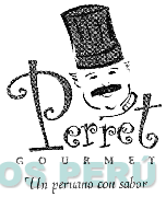 El logotipo conformado por la figura estilizada del rostro de una persona con gorro de chef; la denominación PERRET GOURMET escrita en letras características y en la parte inferior la denominación UN PERUANO CON SABOR escrita en letras características; conforme al modelo adjunto