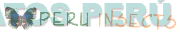 El logotipo conformado por la denominación PERU INSECTS escrita en letras características en los colores verde y anaranjado respectivamente y la representación de una mariposa en la combinación de colores verde, auzl, negro y anaranjado; conforme al modelo adjunto.