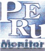 La denominación PERU MONITOR escrita en letras características, en colores azul y blanco; conforme al modelo adjunto