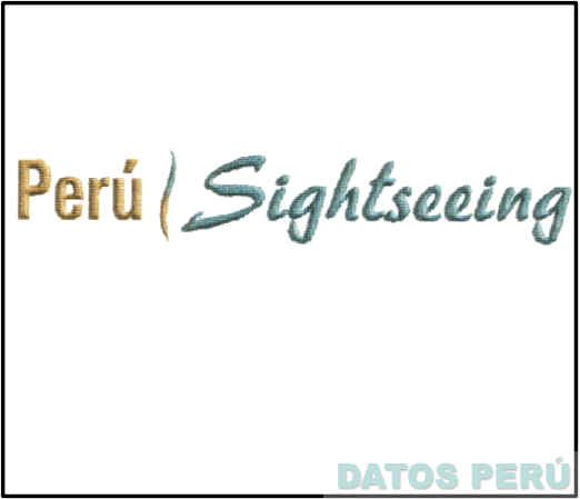 La denominación PERÚ SIGHTSEEING escrita en letras características, entre las dos denominaciones una línea vertical irregular todo en los colores dorado y verde; conforme al modelo adjunto