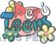 El logotipo conformado por la denominación PERÚ TEENS escrita en letras características, superpuesta a una figura ovalada y la representación estilizada de tres flores, todo en la combinación de colores rojo, amarillo, azul, blanco, rosado y verde; conforme al modelo adjunto