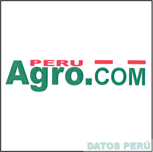La denominación PERU AGRO.COM escrita en letras características, en la parte superior dos líneas horizontales, todo en los colores verde y rojo; conforme al modelo adjunto