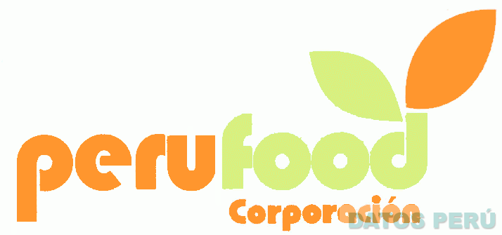 El logotipo conformado por la denominación PERUFOOD CORPORACIÓN escrita en letras características, donde sobre la letra D se aprecia la representación estilizada de dos hojas, todo en la combinación de colores anaranjado y verde; conforme al modelo adjunto