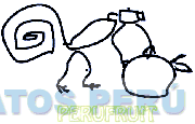 El logotipo conformado por la denominación PERUFRUIT (sin reivindicar) escrita en letras características, sobre la cual se aprecia la silueta estilizada de un mono recogiendo una fruta, todo en la combinación de colores verde y negro; conforme al modelo adjunto