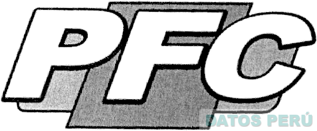 Las letras estilizadas PFC, sobrepuestas a una figura geométrica compuesta por un rectángulo y un cuadrado, todo en la combinación de colores plomo claro, plomo oscuro, blanco y negro; conforme al modelo adjunto