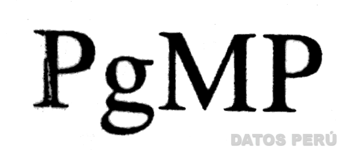 El logotipo conformado por la denominación PGMP escrita en letras características, en donde la letra G se encuentra escrita en minúscula; conforme al modelo adjunto