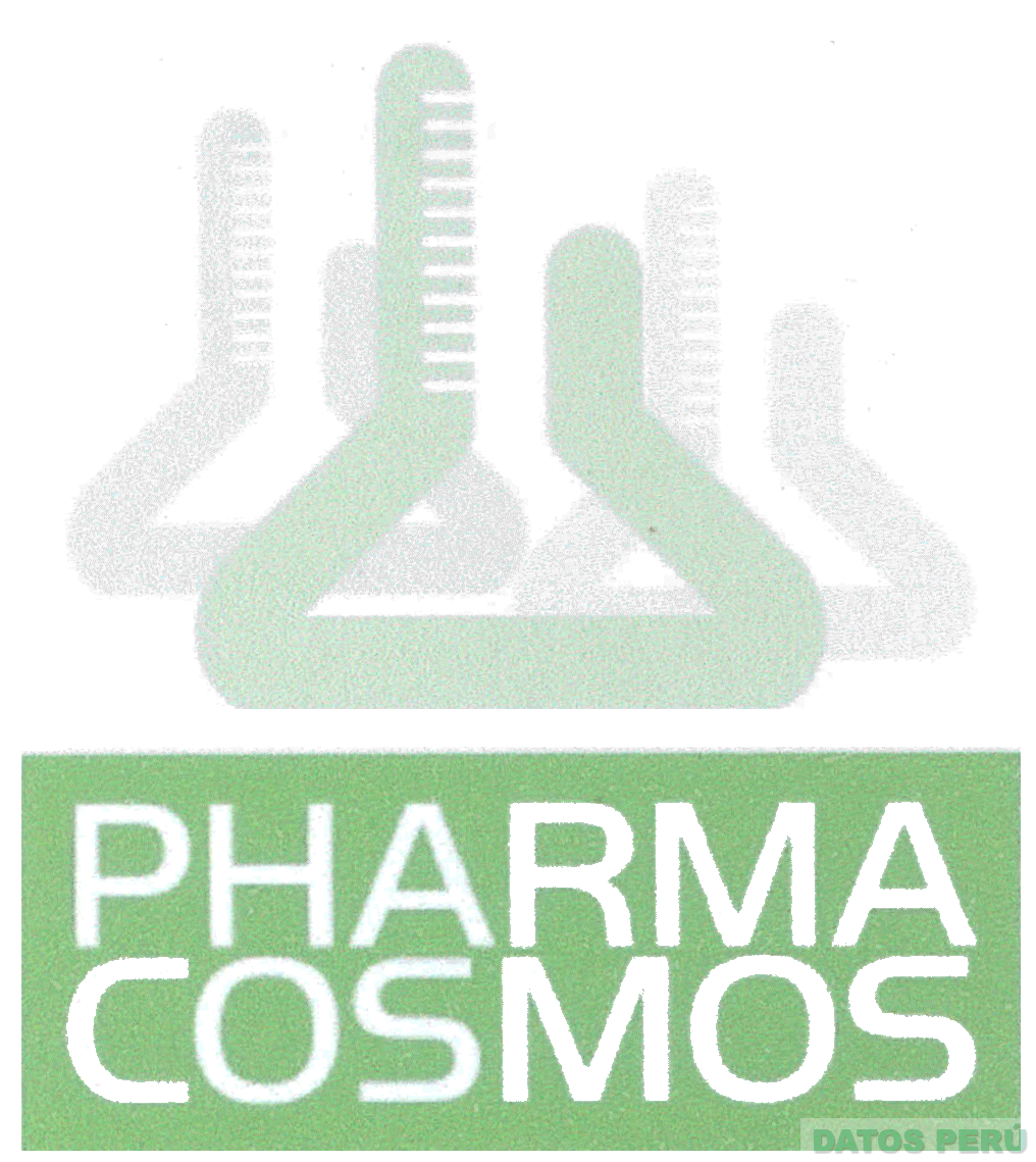 El logotipo conformado por las figuras estilizadas de tres probetas encima de un rectángulo dentro del cual aparece la denominación PHARMA COSMOS escrita en letras características, en la combinación de colores verde pantone 361 C en diferentes tonalidades y blanco; conforme al modelo adjunto