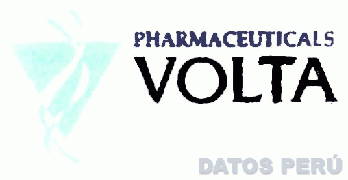 El logotipo conformado por la denominación PHARMACEUTICALS VOLTA escrita en letras características, antecedida por una figura triangular y dos cintas, todos en los colores azul, verde claro y blanco; conforme al modelo adjunto