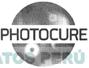 El logotipo conformado por la denominación PHOTOCURE escrita en letras características sobre un fondo blanco rectangular en el centro de una figura circular donde se encuentran figuras circulares más pequeñas; conforme al modelo adjunto