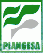 El logotipo de forma cuadrangular conteniendo dos figuras irregulares, la representación estilizada de un pez y la denominación PIANGESA escrita en letras características, en los colores verde y plomo; conforme al modelo adjunto