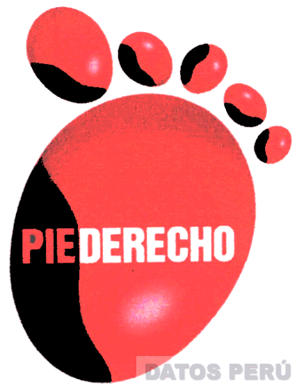 El logotipo conformado por la figura estilizada de seis huayruros de diversos tamaños, de color rojo y negro que representan la figura de un pie; en la parte central del huayruro grande se aprecia la denominación PIE DERECHO escrita en letras características, todo en los colores negro, blanco y rojo; conforme al modelo adjunto