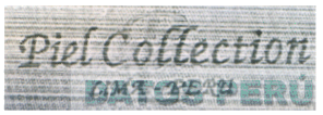 LA DENOMINACION PIEL COLLECTION EN LETRAS PALMER COLOR NEGRO, EN LA PARTE INFERIOR LIMA-PERU, SEGUN MODELO ADJUNTO,