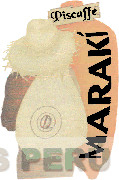 La denominación PISCAFFE MARAKÍ escrita en letras características en color negro y la representación estilizada de una botija y al lado una figura que se asemeja a la silueta de un hombre con un sombrero de paja llevando al hombro un saco, sin reivindicar los colores anaranjado, marrón y beige; conforme al modelo adjunto