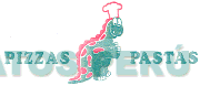 El logotipo conformado por la denominación PIZZAS PASTAS (sin reivindicar la denominación PIZZAS PASTAS) y la figura estilizada de un dinosaurio, todo en los colores verde, rojo y blanco; conforme al modelo adjunto