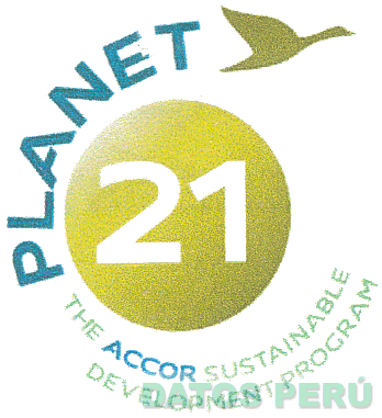 La denominación PLANET 21 THE ACCOR SUSTAINABLE DEVELOPMENT PROGRAM y logotipo (se reivindica colores), conforme al modelo