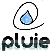 El logotipo conformado por la denominación PLUIE escrita en letras características acompañada por la figura de una gota rodeada por un espiral hacia la derecha, en los colores azul y negro; conforme al modelo adjunto