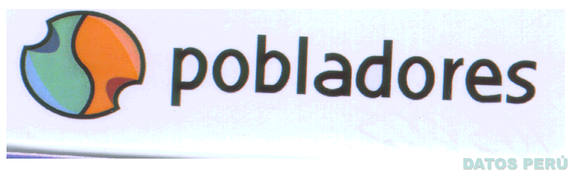LA DENOMINACION POBLADORES CON SU ESCRITURA CARACTERISTICA EN COLOR NEGRO Y UNA FIGURA BASICAMENTE OVAL DIVIDIDA EN DOS CAMPOS POR UNA LINEA CURVA, UNO DE LOS CAMPOS ES EN COLOR ANARANJADO Y EL OTRO COLOR VERDE NILO CON BORDE CELESTE, EN AMBOS CAMPOS SE OBSERVAN PEQUEÑAS MUESCAS, TODO CONFORME AL MODELO ADJUNTO,