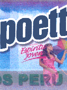 El logotipo conformado por la denominación POETT AROMA ESPÍRITU JOVEN escrita en letras características debajo de la cual se aprecia una línea curva horizontal, al lado derecho se aprecia la figura de una mujer sosteniendo una cometa en un jardín y como fondo se aprecia el cielo, todo en los colores lila, celeste, blanco, azul, fucsia, rosado, verde, anaranjado, rojo, amarillo, crema y marrón; conforme al modelo adjunto
