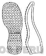 LA FORMA DE UNA PLANTA DE CALZADO (SIN REIVINDICAR) EN LA CUAL SE APRECIA LA DENOMINACIÓN POLISHOES ESCRITA EN LETRAS CARACTERÍSTICAS EN LA PARTE CENTRAL DE LA HUELLA Y ESFERAS EN ALTO RELIEVE CERCENADAS POR LA MITAD (SIN REIVINDICAR LAS ESFERAS EN ALTO RELIEVE CERCENADAS POR LA MITAD); EN LA PLATAFORMA SE OBSERVA UN CONTORNO CURVO EL CUAL SE ACENTÚA EN EL TALÓN, EN LA ARISTA SUPERIOR SE OBSERVA UNA FRANJA EN ALTO RELIEVE Y CURVADA SIN RUGOSIDAD (SIN REIVINDICAR); CONFORME AL MODELO