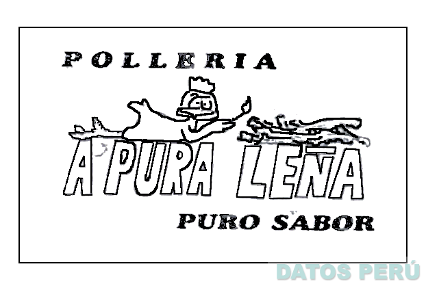 La denominación A PURA LEÑA (sin reivindicar) escrita en letras características, la frase PURO SABOR (sin reivindicar) escrita en letras características, el término POLLERIA (sin reivindicar) escrita en letras características y la representación caricaturizada de un pollo sosteniendo un fósforo y leños; conforme al modelo adjunto