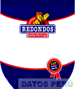 LA ENVOLTURA QUE PRESENTA LA FIGURA DE UN POLLO CON LA DENOMINACION POLLOS-REDONDOS-DOBLE PECHUGA EN LA PARTE SUPERIOR Y CON LA DENOMINACION CON MENUDENCIA DENTRO DE UNA INSIGNIA EN LA PARTE SUPERIOR, TODO EN LOS COLORES AZUL, ROJO, AMARILLO Y BLANCO; CONFORME AL MODELO ADJUNTO,