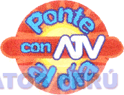 El logotipo conformado por la denominación PONTE AL DÍA CON ATV escrita en letras características, sobre una figura circular estilizada, que contiene figuras triangulares en el borde; al centro de la figura principal, un elemento horizontal de bordes ovalados; todo en los colores anaranjado, azul, rojo, blanco, celeste y amarillo; conforme al modelo adjunto