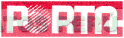 El logotipo conformado por la denominación PORTA escrita en letras características, en donde la letra O está conformada por franjas oblicuas, todo dentro de un rectángulo, en los colores blanco y rojo; conforme al modelo adjunto
