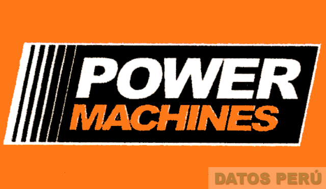 LA DENOMINACION POWER MACHINES DENTRO DE UN RECTÁNGULO EN COLORES ANARANJADO, NEGRO Y BLANCO; CONFORME AL MODELO ADJUNTO
