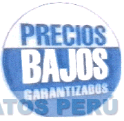 La denominación PRECIOS BAJOS GARANTIZADOS (sin reivindicar) escrita en letras características, dentro de un círculo cortado por una línea, en los colores blanco y azul; conforme al modelo adjunto