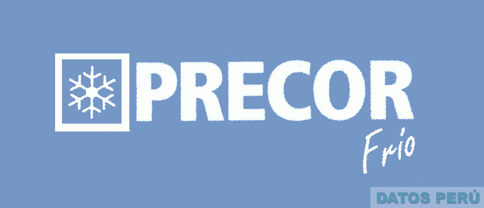 El logotipo conformado por la denominación PRECOR FRÍO escrita en letras características, al lado izquierdo una figura cuadrangular que contiene una figura irregular, todo en un fondo rectangular, en la combinación de colores blanco y celeste; conforme al modelo adjunto