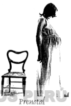 LA DENOMINACION PRENATAL Y FIGURA DE UNA MUJER EN ESTADO DE GESTACION CON TUNICA TRANSPARENTE Y DE ESPALDAS A UNA SILLA ANTIGUA, CONFORME AL MODELO ADJUNTO,