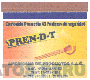 El logotipo conformado por la figura cuadrangular, en cuya parte superior se aprecian dos franjas horizontales, la denominación PREN-D-T escrita en letras características dentro del diseño de una figura irregular; el diseño estilizado de un palo de fósforo encendido y demás frases alusivas al producto, todo en los colores marrón, amarillo en distintas tonalidades, azul, anaranjado, negro y rojo; conforme al modelo adjunto
