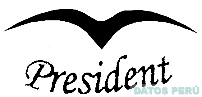 El logotipo conformado por la denominación PRESIDENT escrita en letras características y la silueta de un ave; conforme al modelo adjunto
