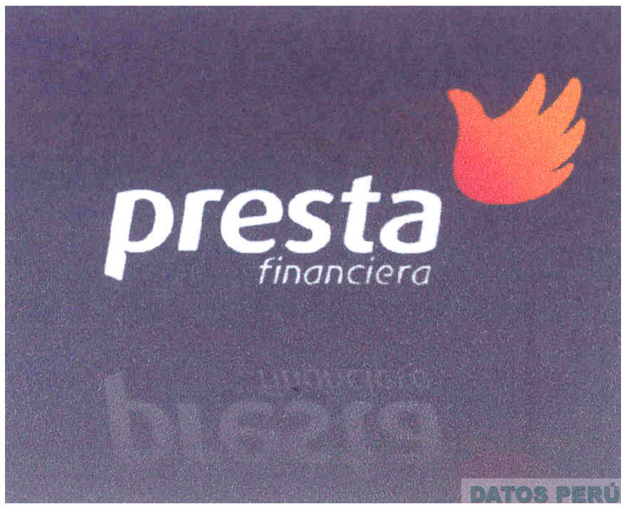 El logotipo conformado por la denominación PRESTA FINANCIERA -sin reivindicar- escrita en letras características la cual tiene un reflejo en la parte inferior, al lado derecho se aprecia una figura irregular, todo dentro de un cuadrado en los colores blanco, rojo, anaranjado, gris y negro en degradé; conforme al modelo adjunto
