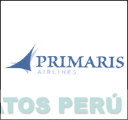 La denominación PRIMARIS AIRLINES escrita en letras características, acompañada por dos figuras triangulares; todo en los colores lila y azul; conforme al modelo adjunto