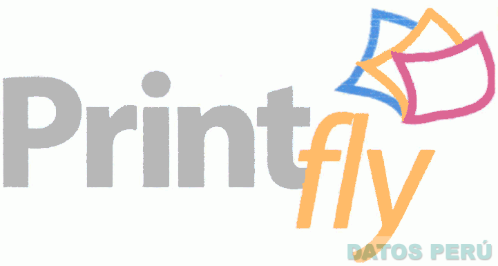 El logotipo conformado por la denominación PRINTFLY escrita en letras características y la representación estilizada de tres papeles, todo en los colores gris, anaranjado, guinda y celeste; conforme al modelo adjunto