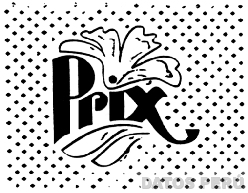 LA ETIQUETA CON LA DENOMINACION PRIX ESCRITA EN FORMA CARACTERISTICA SOBRE UN FONDO DE ROMBOS Y LAS FIGURAS ESTILIZADAS DE FLORES Y PETALOS, CONFORME AL MODELO ADJUNTO,