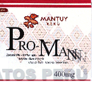 El logotipo conformado por la denominación PRO-MAN (sin reivindicar) escrita en letras características; en la parte superior se aprecian las letras O y M, escritas de forma característica y dentro de una figura irregular, la representación estilizada de un ave, seguida de la denominación MANTUY PERU escrita en letras características; en los extremos superior e inferior se aprecian líneas horizontales; en el fondo se observan diversos rombos y frases alusivas al producto; todo en la combinación de colores rojo, anaranjado, beige, celeste, blanco y negro; conforme al modelo adjunto
