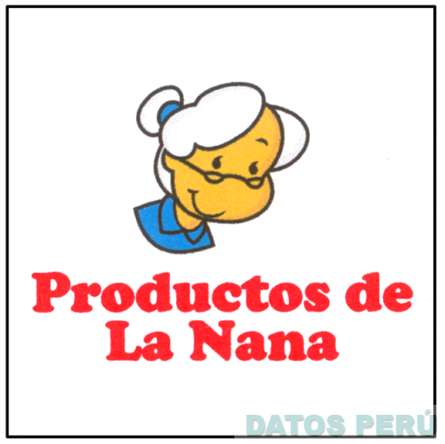 El logotipo conformado por la figura caricaturizada de una anciana cuya cara es de color amarillo, de cabello gris y blanco, con lentes, de camisa azul; debajo la denominación PRODUCTOS DE LA NANA escrita en letras características de color rojo; conforme al modelo adjunto