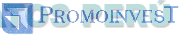 El logotipo conformado por la denominación PROMOINVEST escrita en letras características, antecedida por una figura de cuatro lados, tres de ellos angulares y uno curvo, en cuyo interior se aprecia, un triángulo y una figura geométrica de seis lados, todo en los colores azul, celeste en diversas tonalidades y blanco; conforme al modelo adjunto