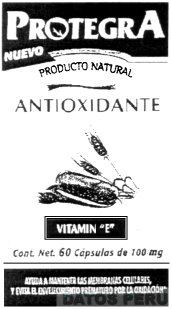 LA DENOMINACION PROTEGRA ANTIOXIDANTE, EN LETRAS CARACTERISTICAS, DENTRO DE UNA ETIQUETA DE FORMA RECTANGULAR, QUE PRESENTA EL DISEÑO DE ESPIGAS, CONFORME AL FACSIMIL ADJUNTO,