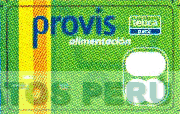 El logotipo conformado por la denominación PROVIS ALIMENTACIÓN escrita en letras características, al lado izquierdo se aprecian cuatro franjas rectas verticales, al lado derecho una figura rectangular dividida en dos segmentos y que presenta a su vez la denominación TEBCA PERÚ escrita en letras características, debajo una figura ovalada que contiene dos figuras irregulares, de fondo se aprecia un trapecio y dos círculos, todo dentro de una figura rectangular y en la combinación de colores verde en diversas tonalidades, amarillo, anaranjado, azul y blanco; conforme al modelo adjunto